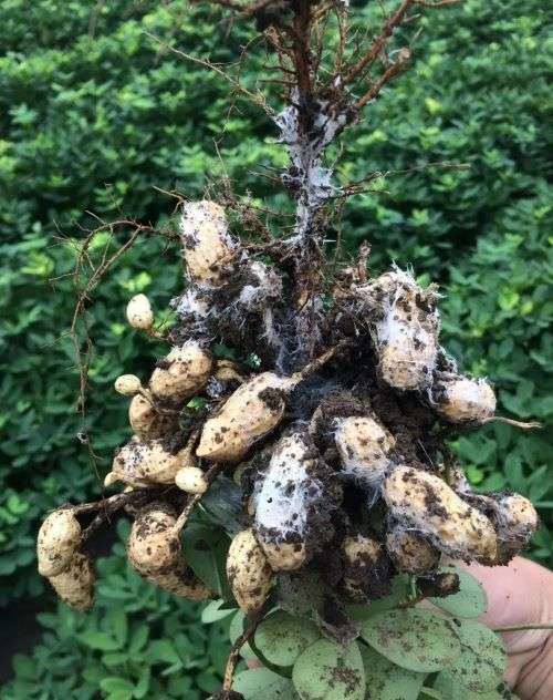 白绢病又称菌核性根腐病和菌核性苗枯病,损害苗木和幼树的根茎部。该病可损害多种植物,还可引起花生,大葱等许多农作物发病,白绢病首要散布在河南省南部和西南部。花生白绢病是一种土传病害,主要依靠土壤带菌侵染传播,也可以通过种子带菌传播。从2011年开始,在花生主产区的河南、山东,花生白绢病的发生逐年加重,尤其是到2018年、2019年,更是达到极其严重的发生程度,致使花生严重减产。由于其发病后防治难度大、对花生危害严重,被广大农户和农资经销商喻为“花生症”。