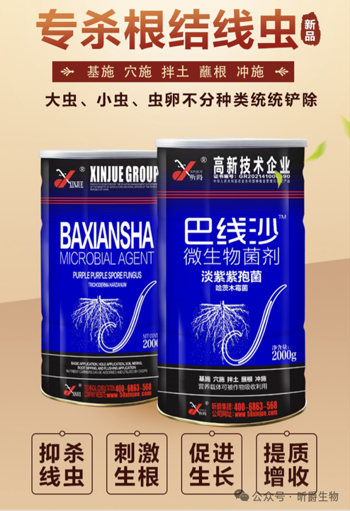 水溶肥厂家昕爵生产的新缉·毒,专治各种顽固性病毒,真对多种作物黄叶病毒,花叶病毒,蕨叶病毒,黄化曲叶病毒等,其余病毒药搞定不了的就找新缉毒一次治愈!巴线沙的开启传统化学药剂防治根结线虫难的新时代!!